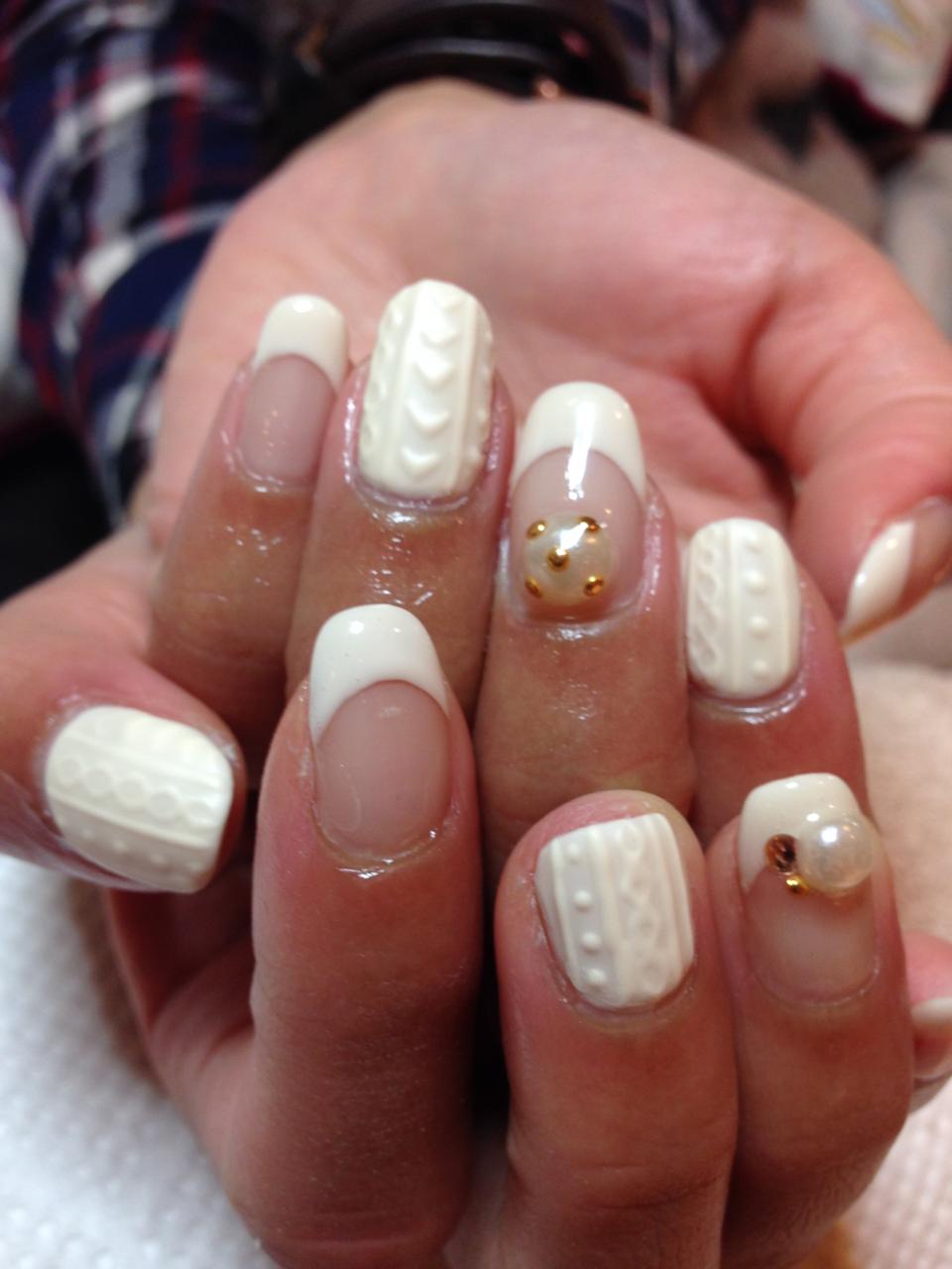 ニットネイルは王道のオフホワイトがサイコーに可愛いですね。 他にもオススメはグレーやマスタードも♡